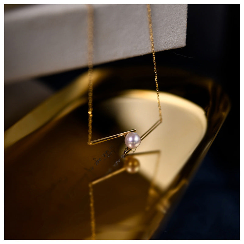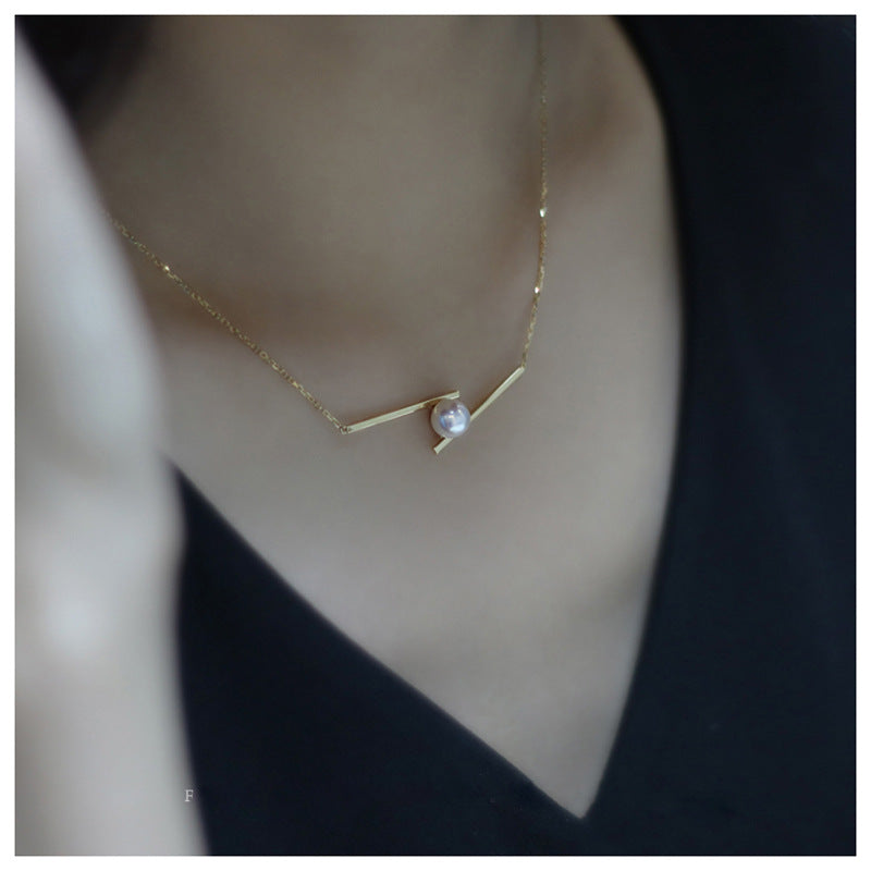 Balance Beam Pearl-Set Clavicle Necklace