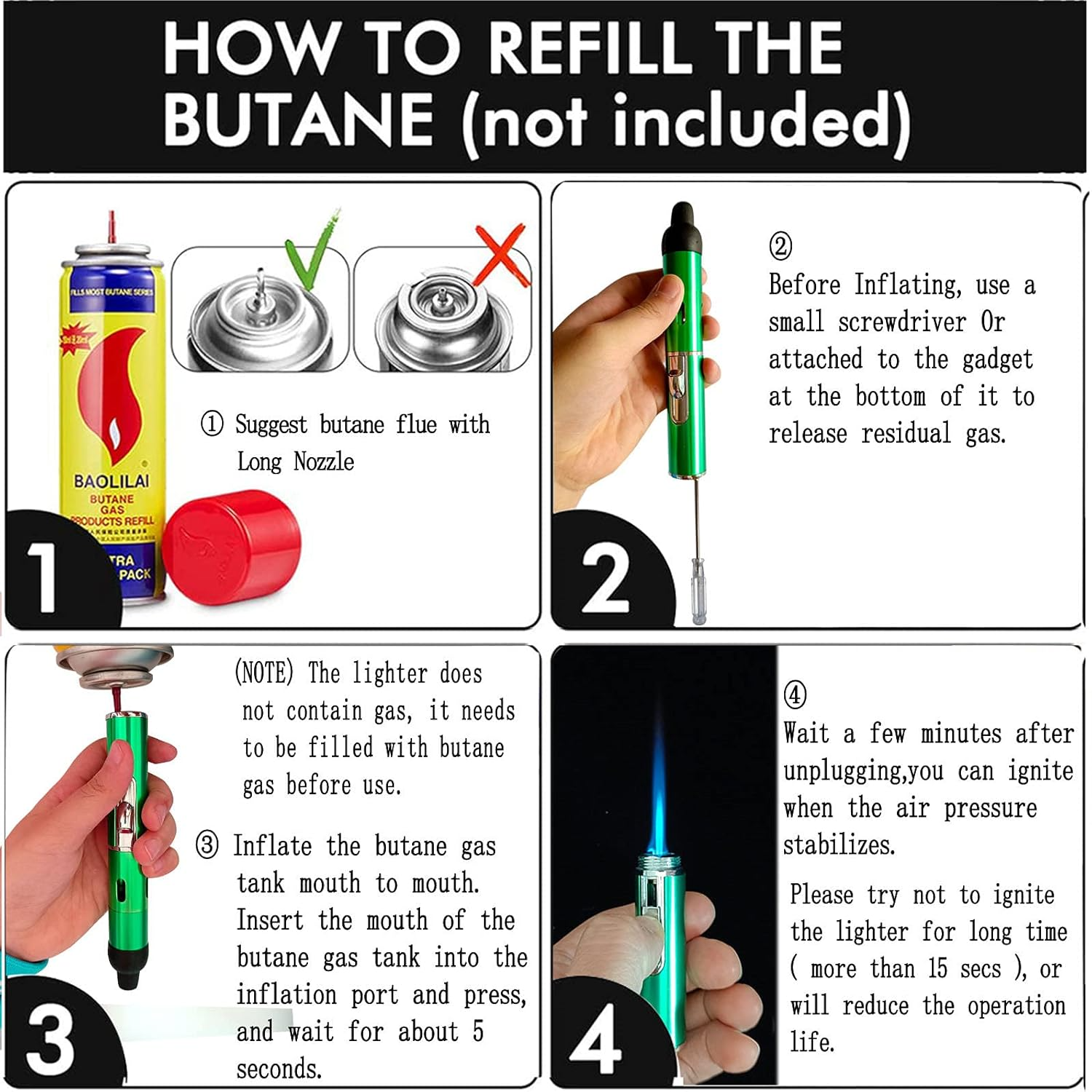 Built-in Refillable Lighter – Just ignite and smoke. When it cools down, reignite and continue.